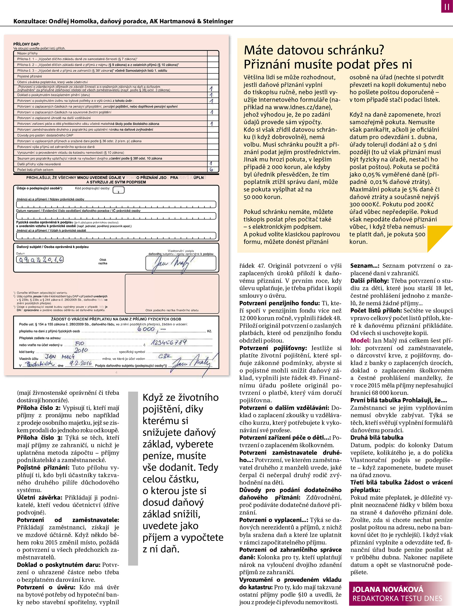 MF Dnes 9. 2. 2015 – článek Daňové přiznání krok za krokem